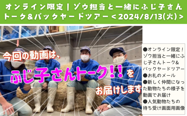 【あと2つ!】オンライン限定|ゾウ担当と一緒にふじ子さんトーク&バックヤードツアー<2024/8/13(火)>