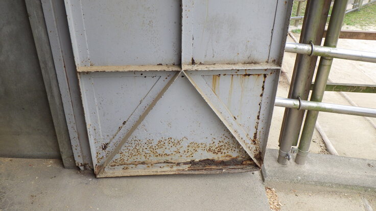 第二ステップのラマ舎の扉と格子戸ですが、現在サビによる腐食が進んでいます。