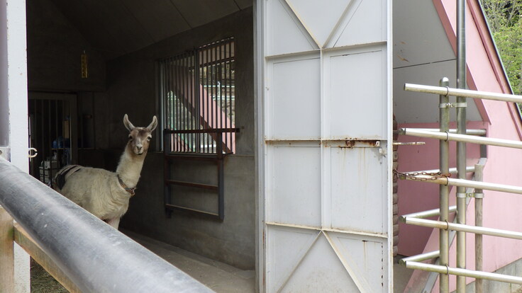 こちらはラマ舎の獣舎と放飼場をつなぐ扉です。