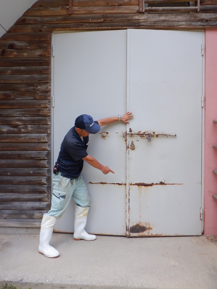 格子戸同様、腐食が進んでいることにより、鉄板が膨らんでしまい、扉を開けたり閉めたりすることが大変困難な状況です。。