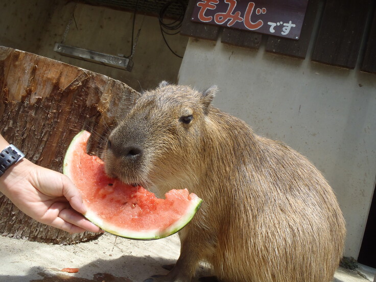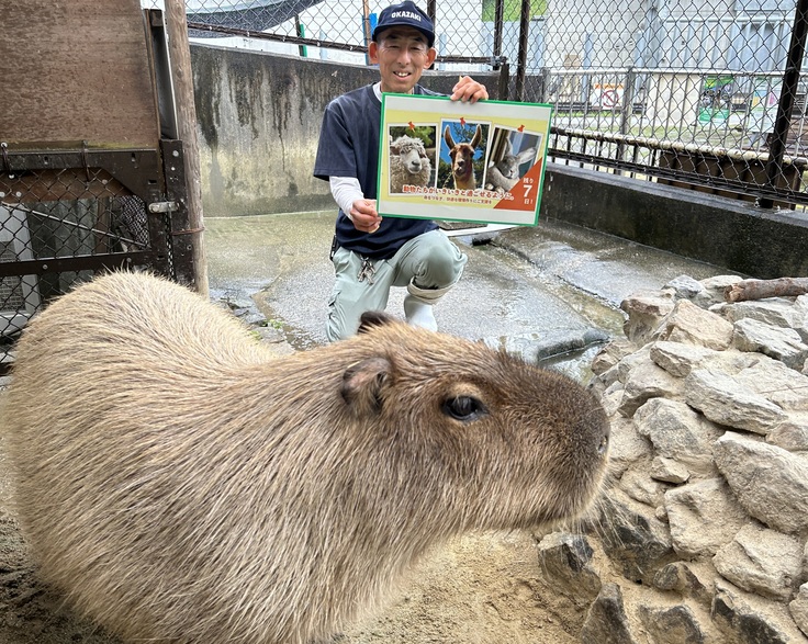 小動物を担当する私と一緒に写っているのは、カピバラのもみじちゃんです。
