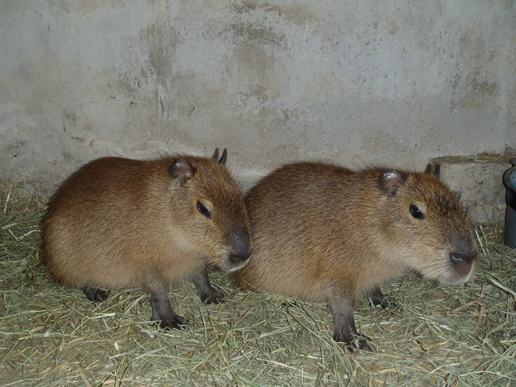 カピバラの子どもと大人の違いの一つはその大きさ、うまれた時の体重は約1,5㎏でしたが今では約60㎏になります。