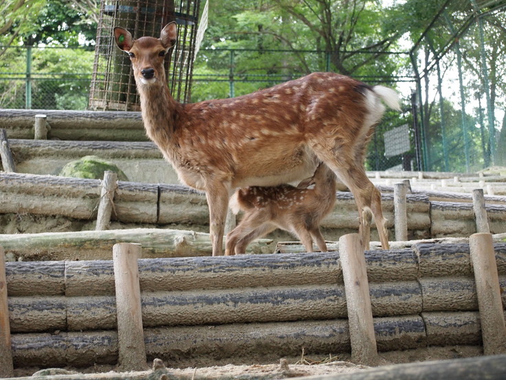 現在のシカ舎では、「スギちゃん」「キンタロー」をはじめとして、若手グループも増えてきましたが、おかあちゃんと同世代の個体たちもまだ元気に暮らしています。