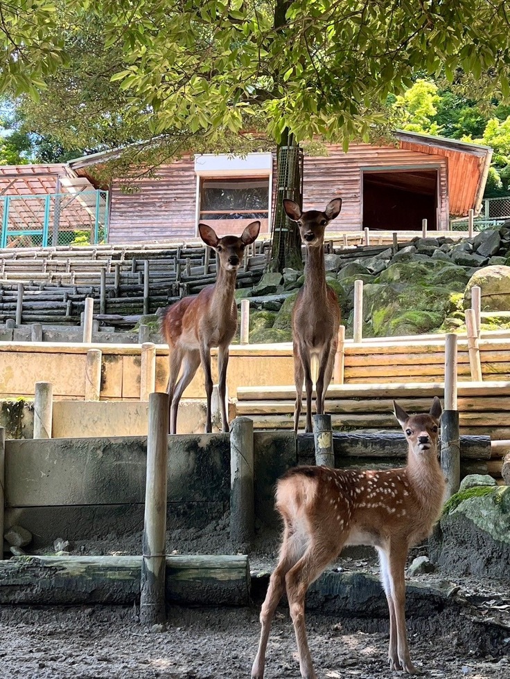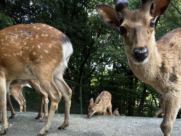 さすがに年齢には抗えず足が悪かったり、目が見辛かったりして、広いシカ舎の中を登ったり下りたり、時には頑なに動かなかったりしながらも自分たちの意思で自由に過ごしています。
