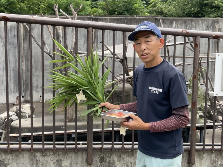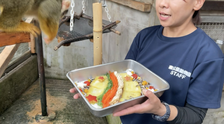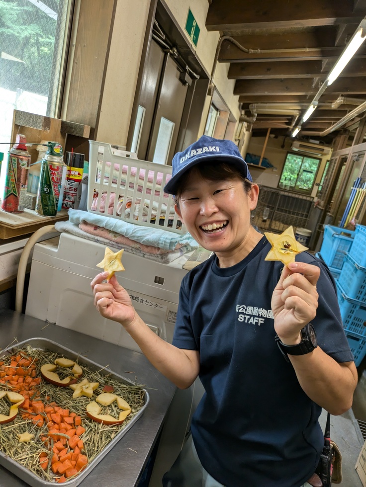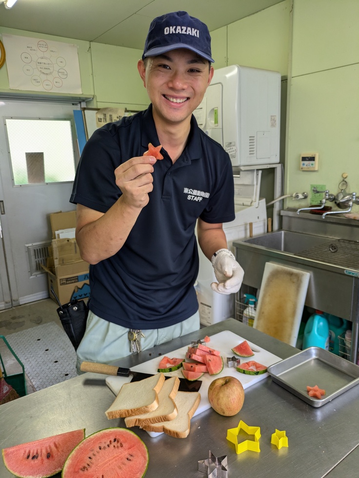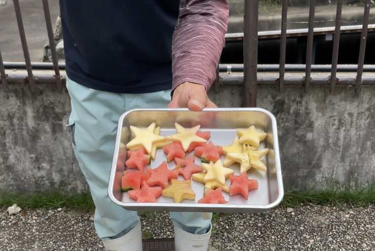 ニホンザルには星形にカットした食パン、リンゴ、スイカをプレゼントしました。