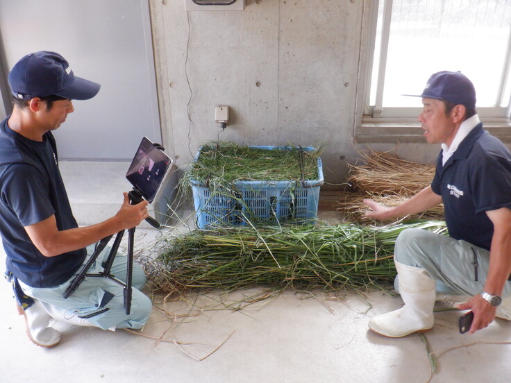 バックヤードツアーの後は飼料庫に戻って「ふじ子さんトーク」です。