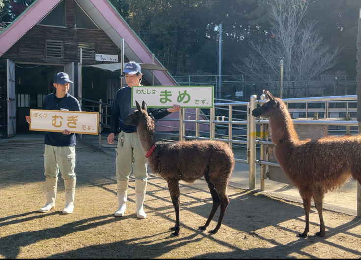 お名前発表最後はラマのペア、0才コンビの2頭です