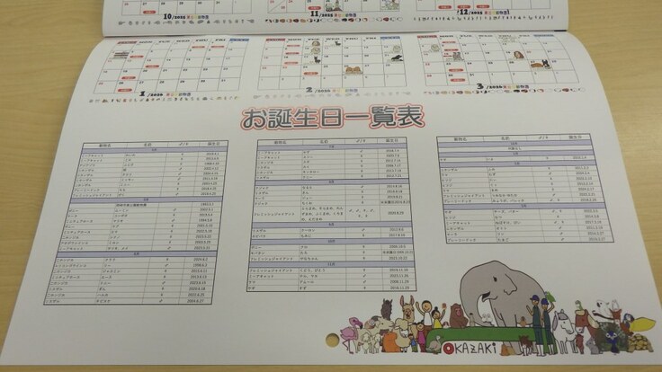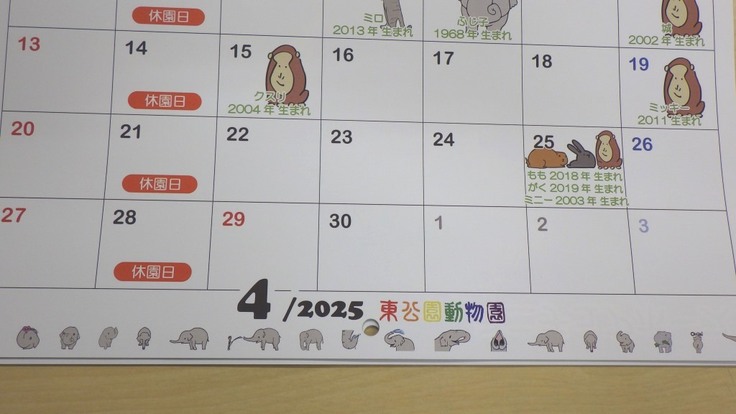 ↑↑↑カレンダーの巻末には、東公園動物園の仲間たちのお誕生日も掲載しています!皆様と同じお誕生日の動物はいるでしょうか~??