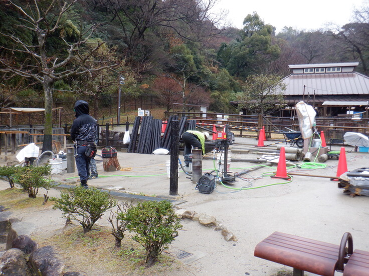 ついに3月10日からふれあい舎のヒツジ・ヤギパドックの牧柵の修繕が始まりました!