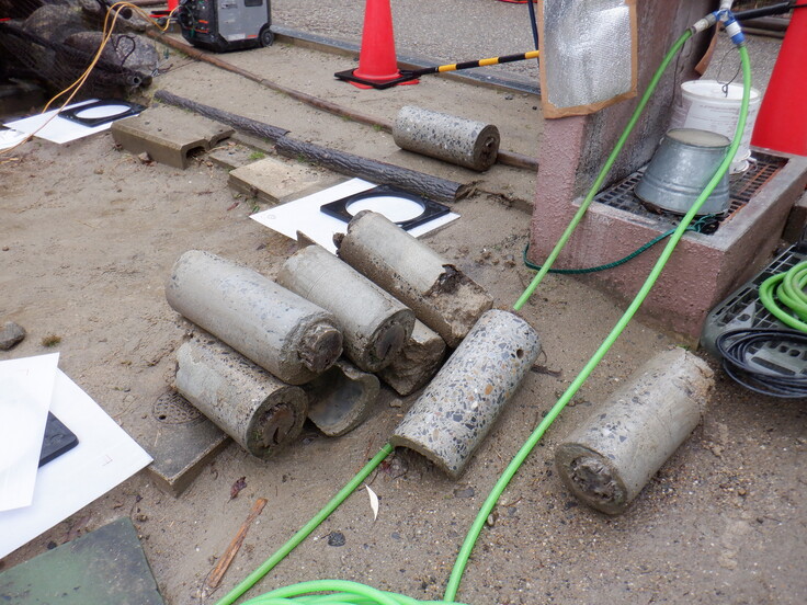 ヒツジ・ヤギのパドックの木製牧柵をすべて、樹脂素材の擬木に交換します。