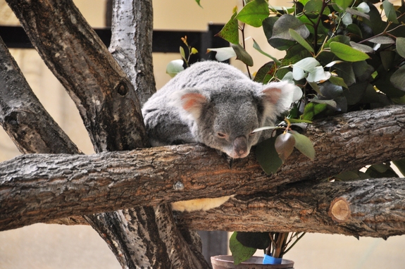 クレメンツさん(メス)です。ユーカリを取り換えたばかりなのに、ぐっすり眠っています。