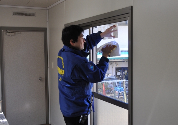 紙すきしたものを窓に貼って乾かします。