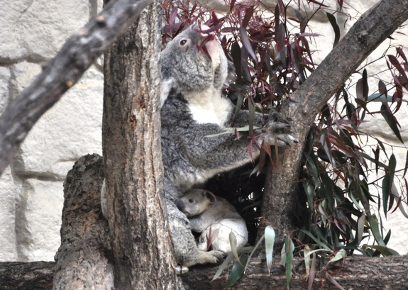 コアラの赤ちゃんは、産まれて1年位で大きくなってお母さんと別々になるので、お母さんと一緒にいる姿が見られるのは今だけになりますよ!