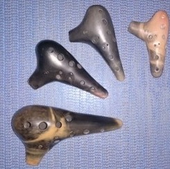 オカリナは移調楽器ですので、それぞれの調のものがあり、1Cが一番小さくて、音の高いオカリナになります。4本並べると上の写真の様になります。