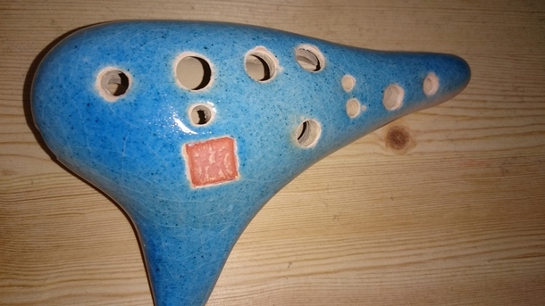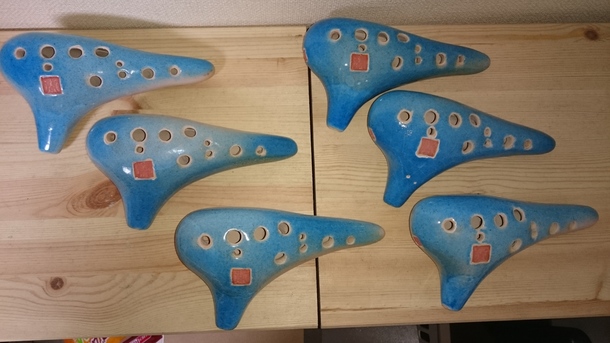 写真は、蘭ちゃん先生の要望にあわせて、試行錯誤しながら作っている、青いオカリナです。製作者の方はまだ納得していません(^^;;