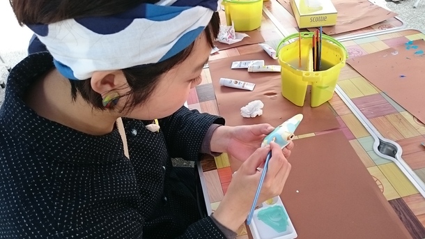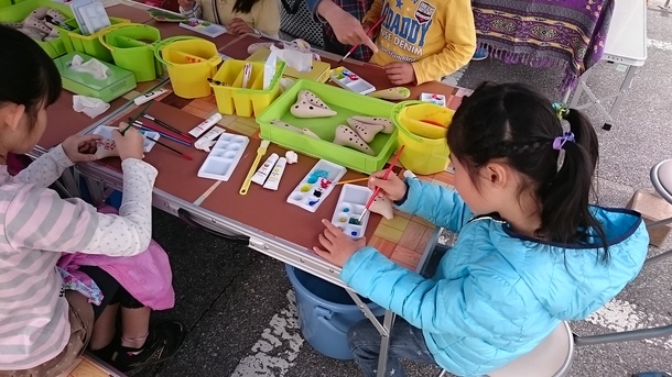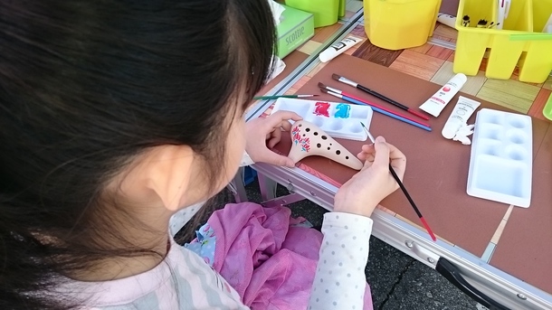 唯くんがつくりためた、素焼オカリナの絵付けをメインにワークショップを開いています。