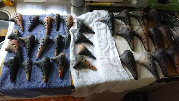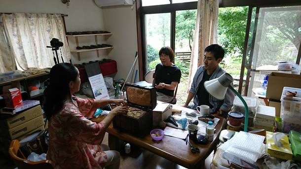 昨日、雑誌Ocarinaの取材があり、ひぐらしオカリナの鈴木のぼる先生、Thousand Leaves Ocarinaの千葉稔先生が工房にご訪問いただきました。