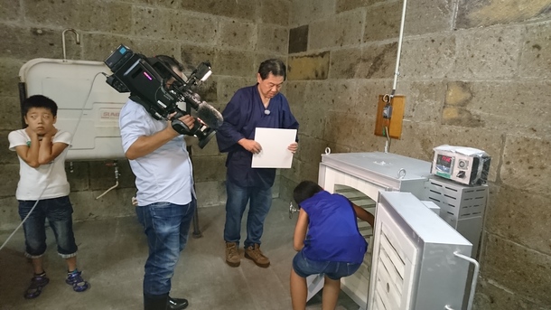台風で締め切り、エアコンなし、撮影用の照明で汗だくでした