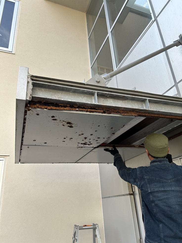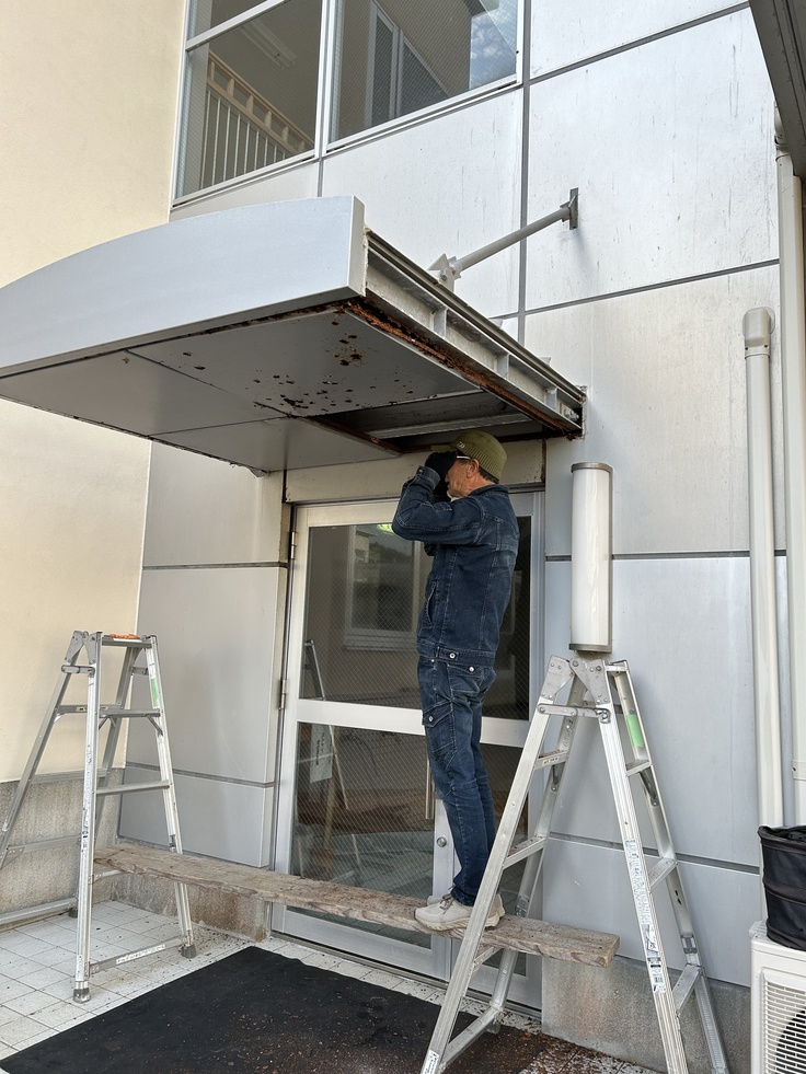 入口のひさしがボロボロに剥げて落ちかかっていましたが、工事が始まりました。