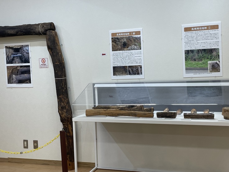 新しく発見された壕の写真や遺品、木材などが展示されており、