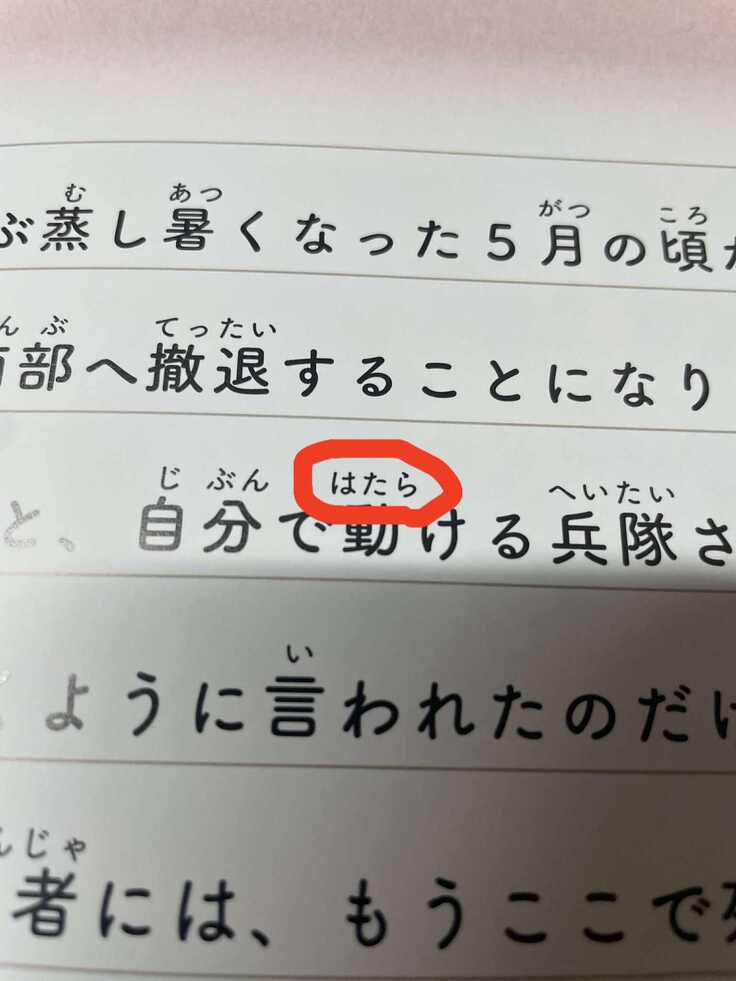 正しくは「うごける」ですが、誤って「はたらける」と印字されております。