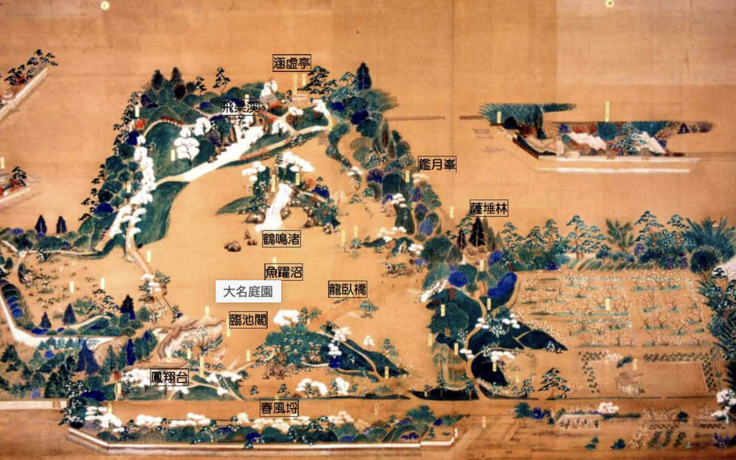 江戸時代に描かれた「玄宮園図」には「玄宮園十勝」と呼ばれていた名所を見ることができ、湖国の風景が凝縮された「江戸時代の箱庭」とも言える美しさを誇ってきたことがわかります。