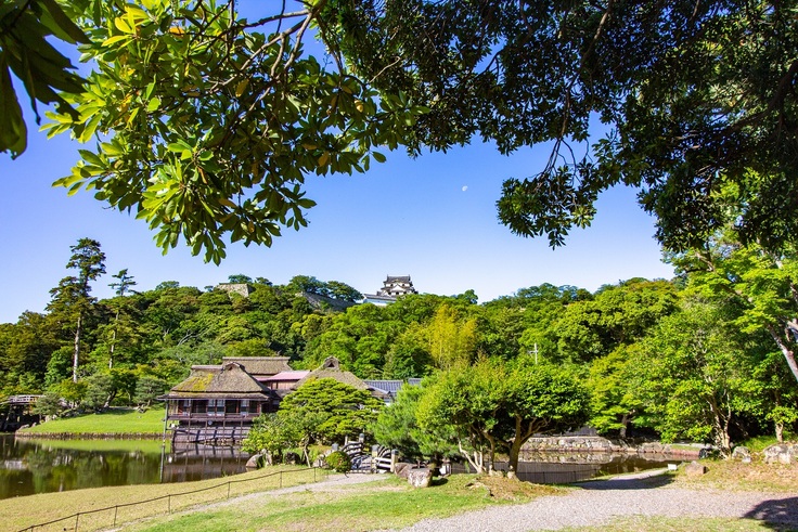 彦根城の北東に位置する江戸時代の大名庭園「玄宮楽々園」は、彦根藩主・井伊家の下屋敷「槻御殿(楽々園)」と、その周囲に築かれた大名庭園「玄宮園」からなる国指定の名勝です。