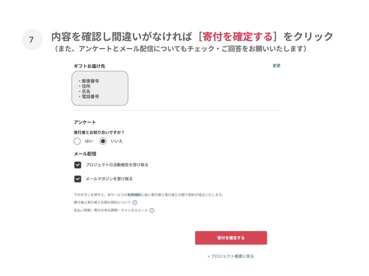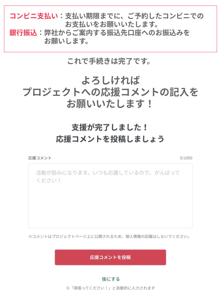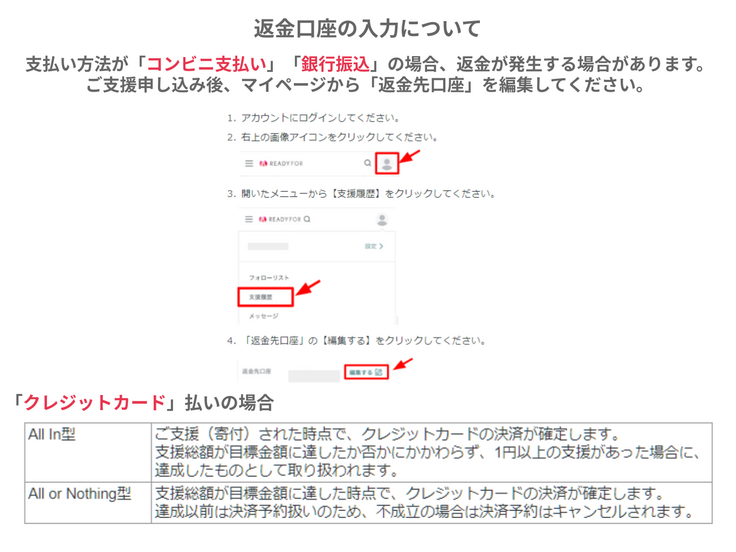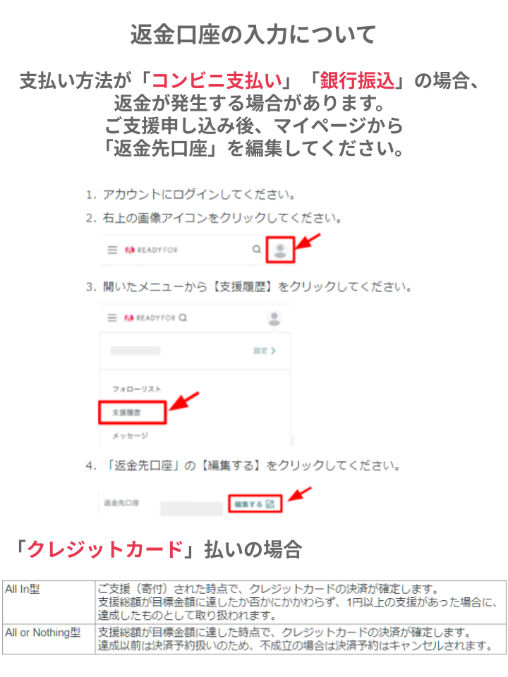 ご支援確定後の返金やキャンセルは、ご対応致しかねますので、何卒ご了承ください。ご支援の確認についてはマイページの『支援履歴』よりご覧いただけます。