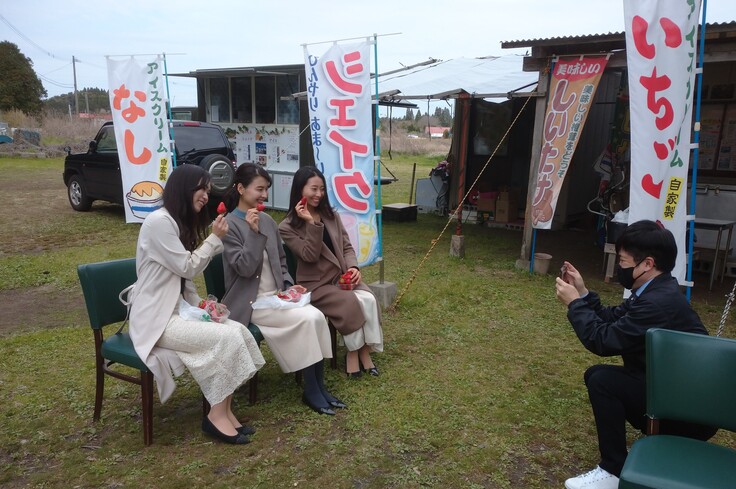 地元メディアのMBC放送様と、霧島市広報担当の方が来園されて鹿児島ブランド『ぴかいちご』と、いちごアイスの取材にいらしていただきました。