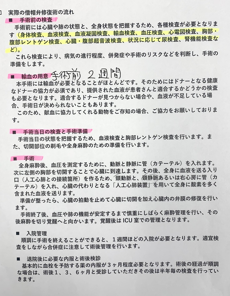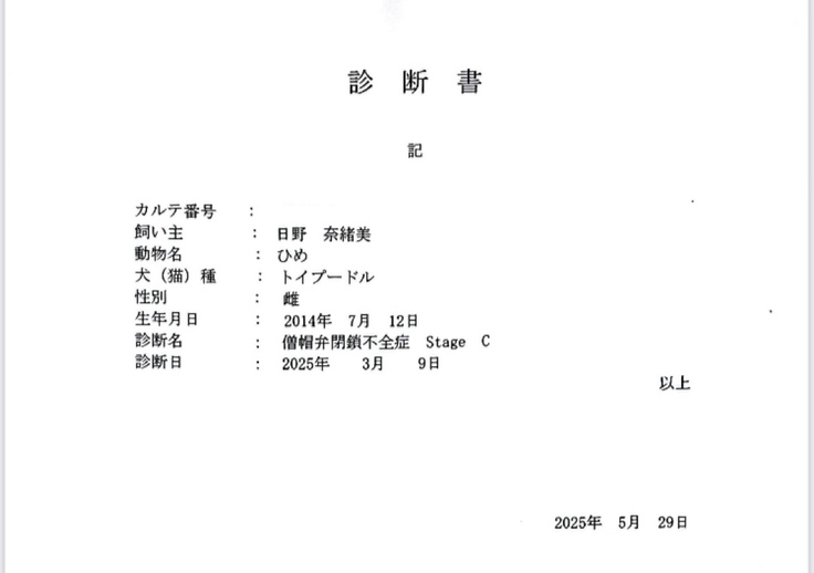 病名は僧帽弁閉鎖不全症と告げられました。