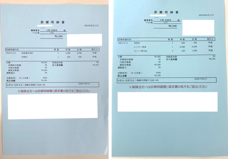 ページ上に掲載している診断書や診療明細書などの資料は全て動物病院から掲載の許諾を得ております。