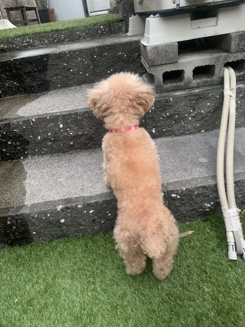 毎日暑いので☀️涼しくなってから抱っこ散歩とお庭に少し😊