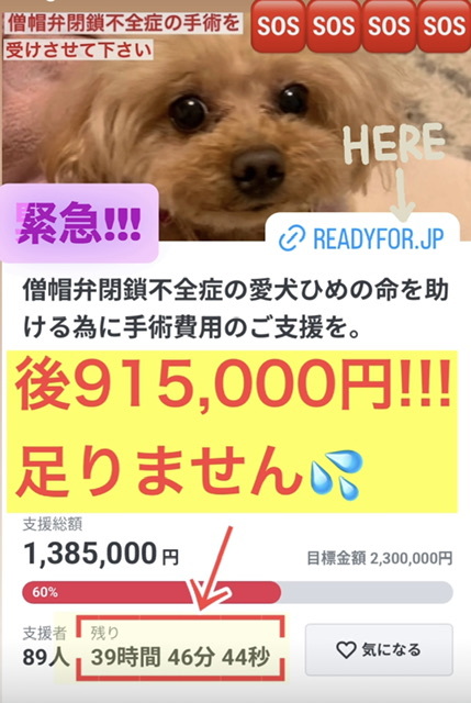 大変心苦しいですが、日々の診察代や薬代で精一杯な状況です。
