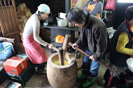 特別に、、、午前中には、アイヌ料理教室も開きました。臼で、稲キビを粉にしているところ。このあと、ふるいにかけてから、上新粉とまぜて平たく丸め、ゆでてから、甘い昆布たれでいただきました。