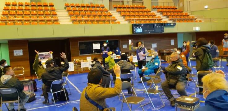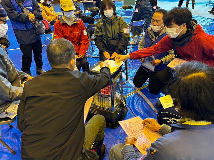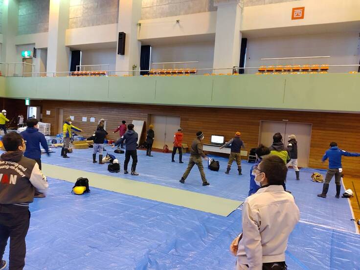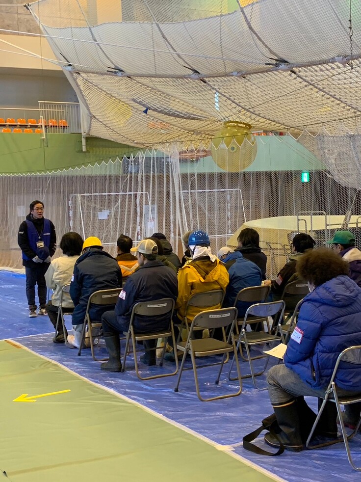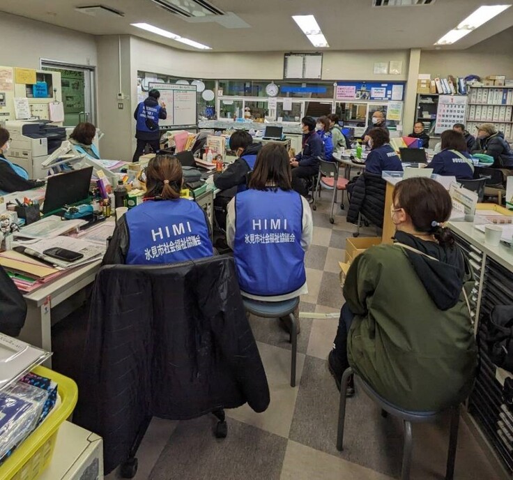 災害ボランティアセンターは、毎朝、運営スタッフ(氷見市社会福祉協議会職員&駆けつけた県内外の社会福祉協議会職員&ボランティアスタッフ)の全体ミーティングで始まります。