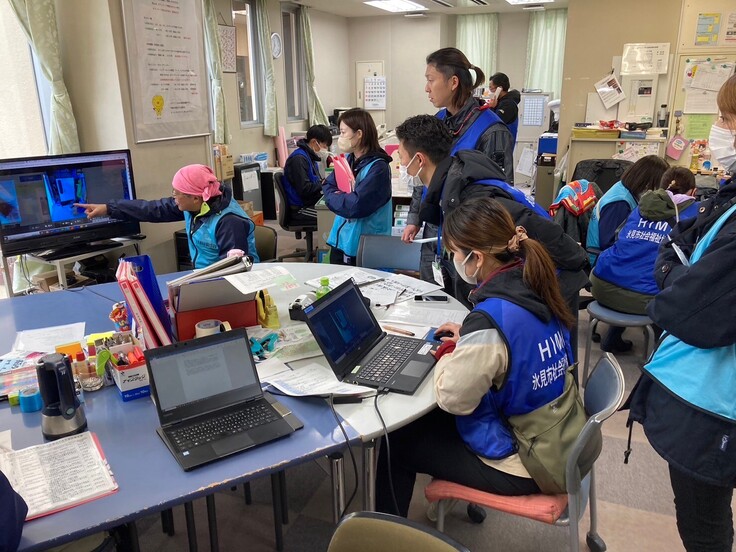 支援活動を終えた災害ボランティアの方々が帰ってこられると、活動が完了したか、実際の活動の様子などをご報告いただきます。アプリのほか、口頭でコミュニケーションを取りながら報告をしていただきます。