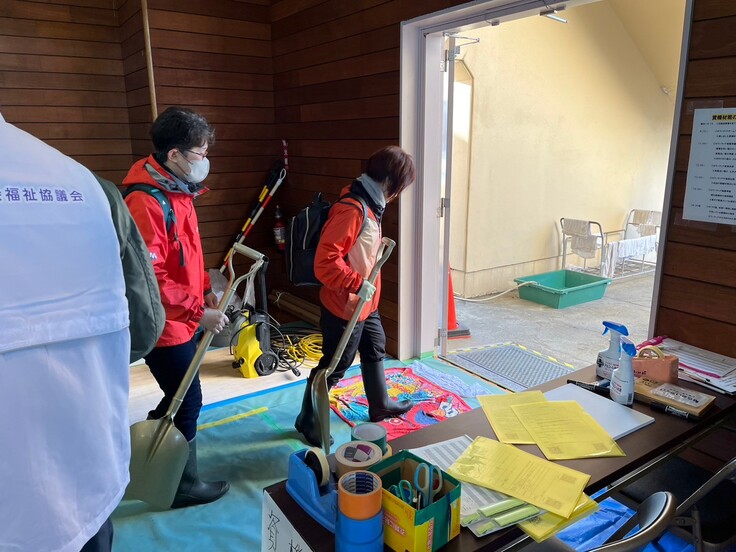 氷見市社会福祉協議会には、連日、富山県内や県外の社会福祉協議会から派遣された多くの職員が応援に駆けつけており、一緒に災害ボランティアセンターの運営を行っています。