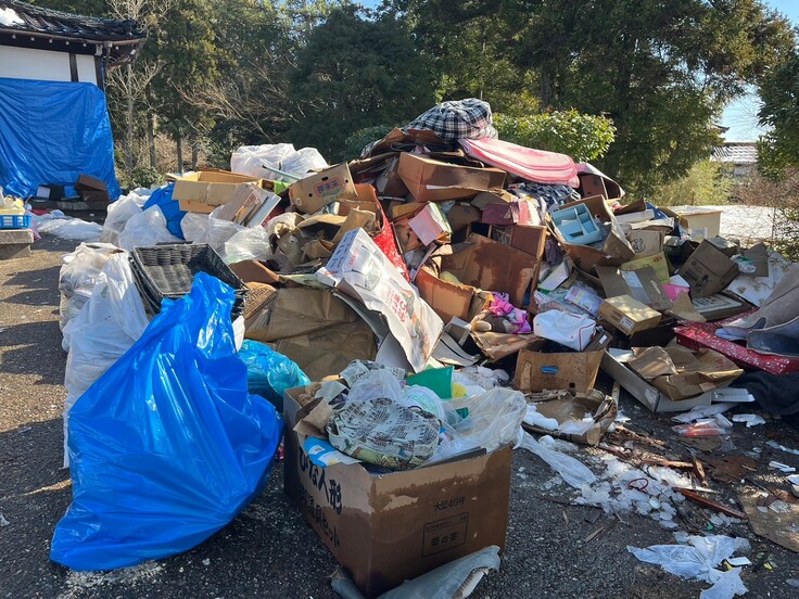 地震で崩れたものはもちろんですが、仏壇、タンスなど、かろうじて地震の被害を受けなかったものも、ひとつずつ中身を整理し、処分するための分別が必要です。膨大な作業量で、高齢者だけの世帯などではとても苦労していらっしゃり、サポートが必要な状況となっています。