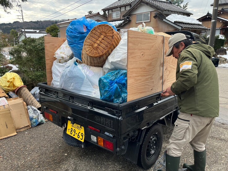 また、分別作業はできても災害ゴミ置き場までの運搬手段(軽トラック等)がない世帯も多く、そのような時は災害ボランティアセンターからトラックに乗った運搬ボランティアが出向いています。