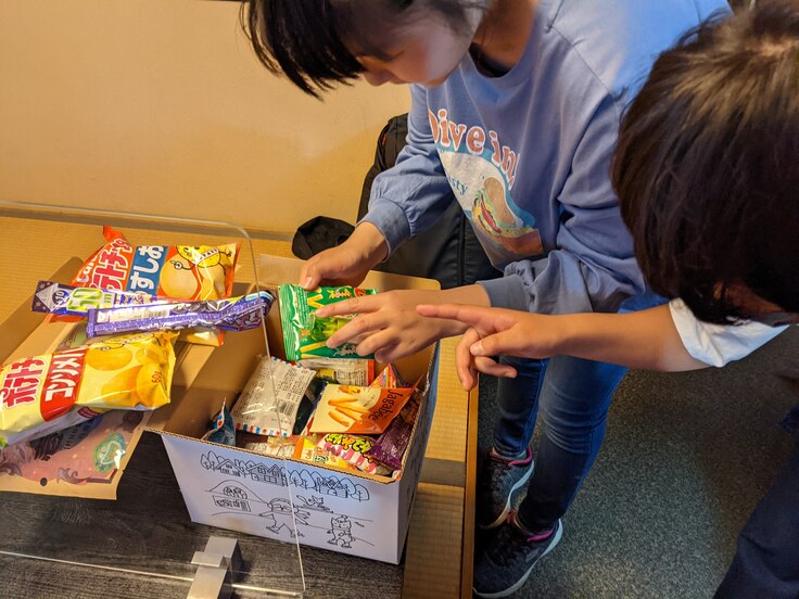 子どもたちもさっそく箱を開けてお菓子を物色(笑)