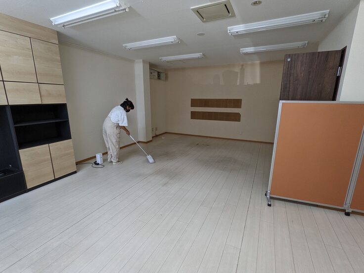 遊びながら掃除したり、配達されたカウンターや椅子など組み立てたり。子どもたちが手伝ってくれてかなり助かりました。