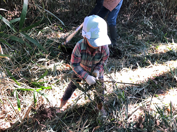 ・五感を研ぎ澄ませ、自然の循環を体感しながら環境保全活動を行います。子どもたち自身が主体的に森の整備に関わることで、自分の居場所となり、森が心地よい空間となります。植物や昆虫、動物などの生き物に触れることで「多様ないのち」を感じ、共存の必要性を学びます。