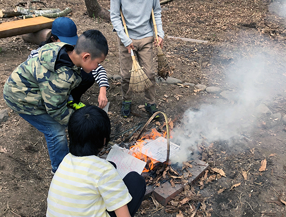 ・子ども焚き火場で好きな料理やおやつを作ったり、火を使ったさまざまな遊びをすることができます。自分で料理することで、食べること(栄養など)に興味を持ち、将来健康を考える人になります。