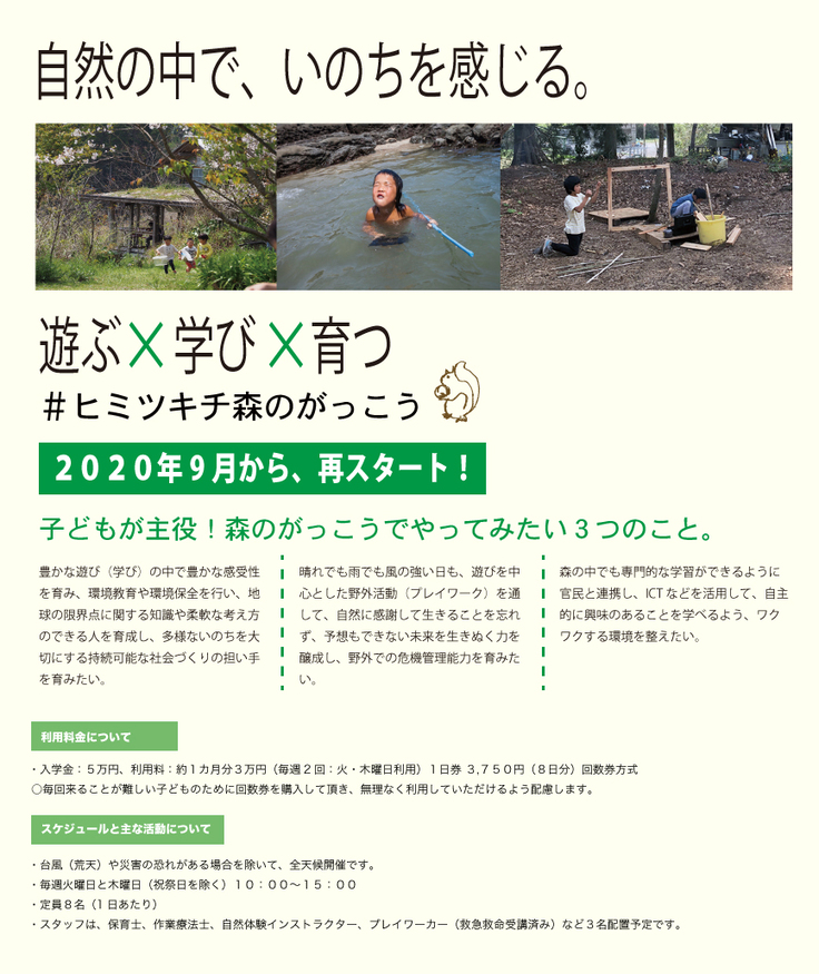 再スタート予定のヒミツキチ「森のがっこう」について↓