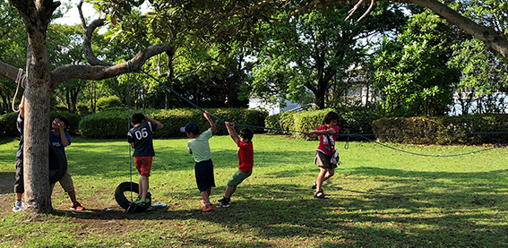 ・台風などの荒天のときは活動を中止しますが、晴れの日以外の全天候(寒い日も暑い日も)、野外で過ごし、遊び(学び)通して危機回避能力やアウトドアに必要な知識と経験を育みます。