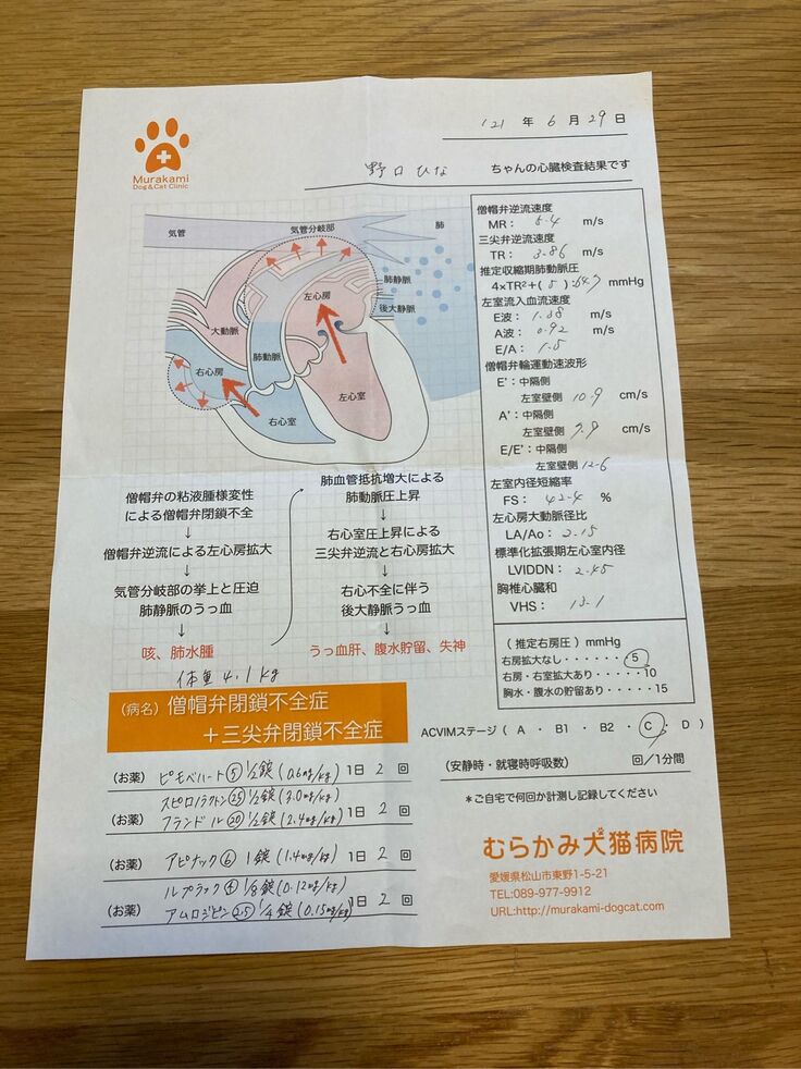昨年初めて僧帽弁閉鎖不全症「ステージB2」と診断されて約1年後の2021年2月24日、ついに「ステージC」と診断されてしまいました。