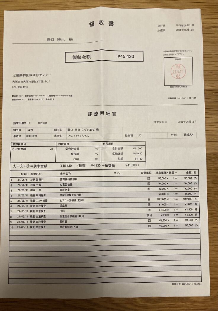 2021年6月11日愛媛から大阪にある、近畿動物医療研修センター付属動物病院さんに行き、まずは精密検査を行いました。