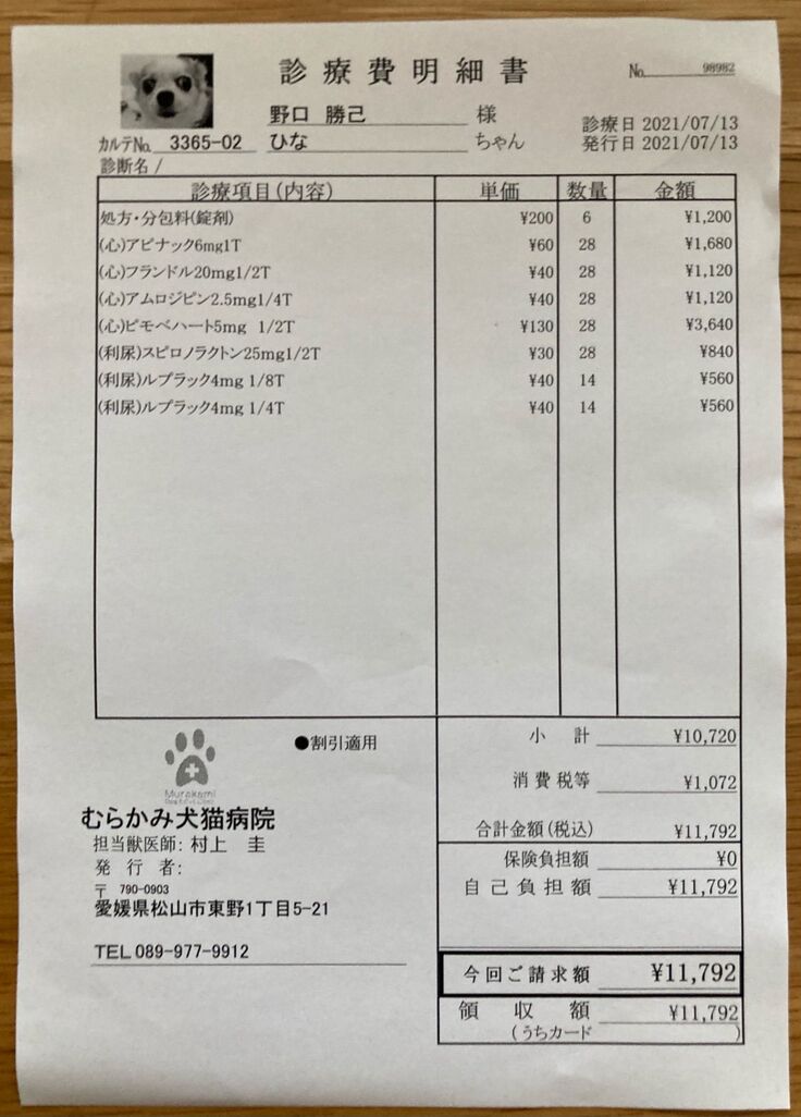 ひなは年に1回(2019年3月まで)誕生月に健康診断を受けており、2019年3月初めて心雑音を指摘されました。