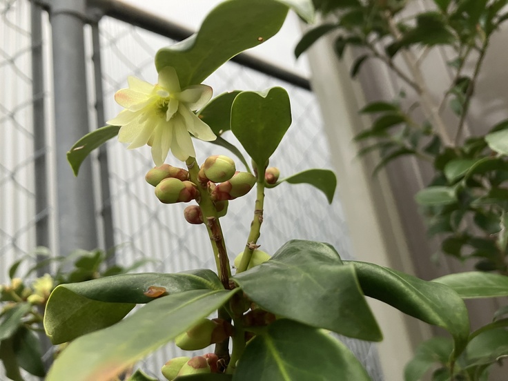 シキミ、サカキ、ヤマザクラ、オオシマザクラ、ナンキンハゼ、ナンテン、センダン、フウ、シマトネリコ、ヒメシャラ、ゴヨウマツ、ケヤキ、イロハモミジ、トウカエデ、コナラ、シリブカガシ、ウバメガシ、クリなどになります。