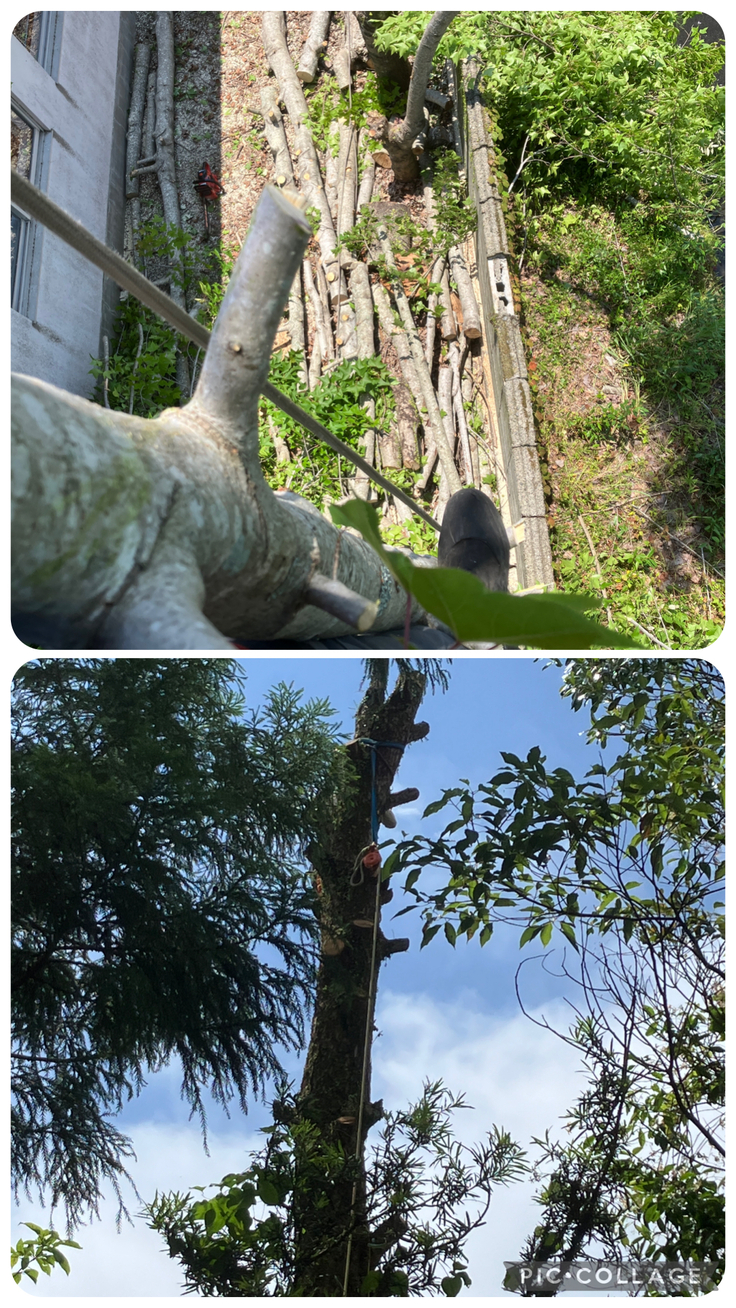 ①台風シーズンを前に特殊伐採の現場が多く入りました。